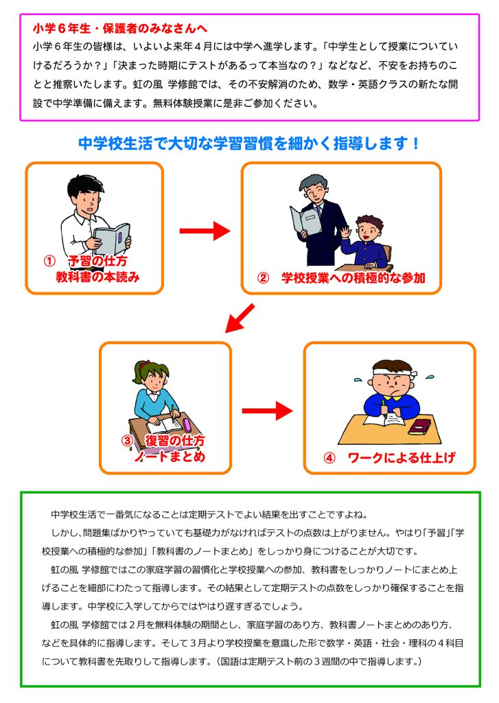 小学6年生の皆様は、いよいよ来年度4月には中学校へ進学ですね。